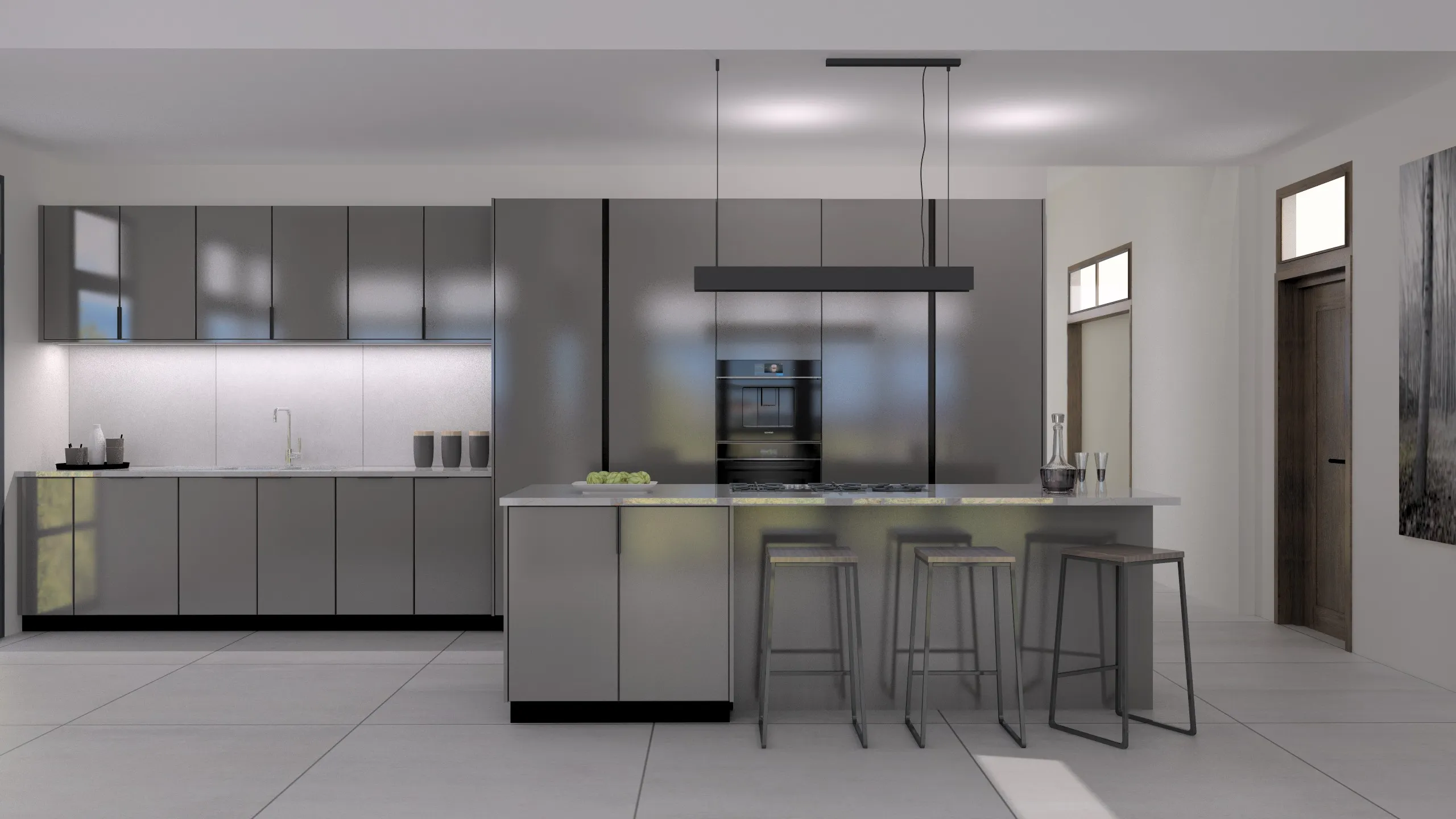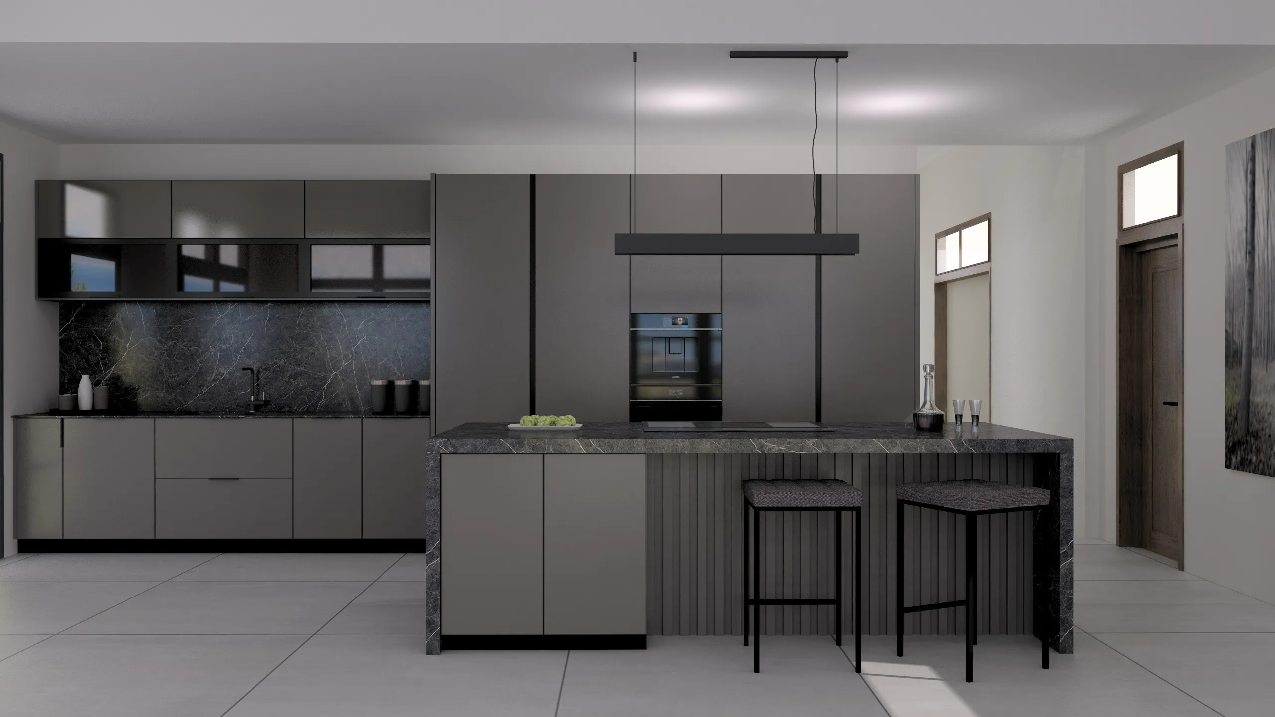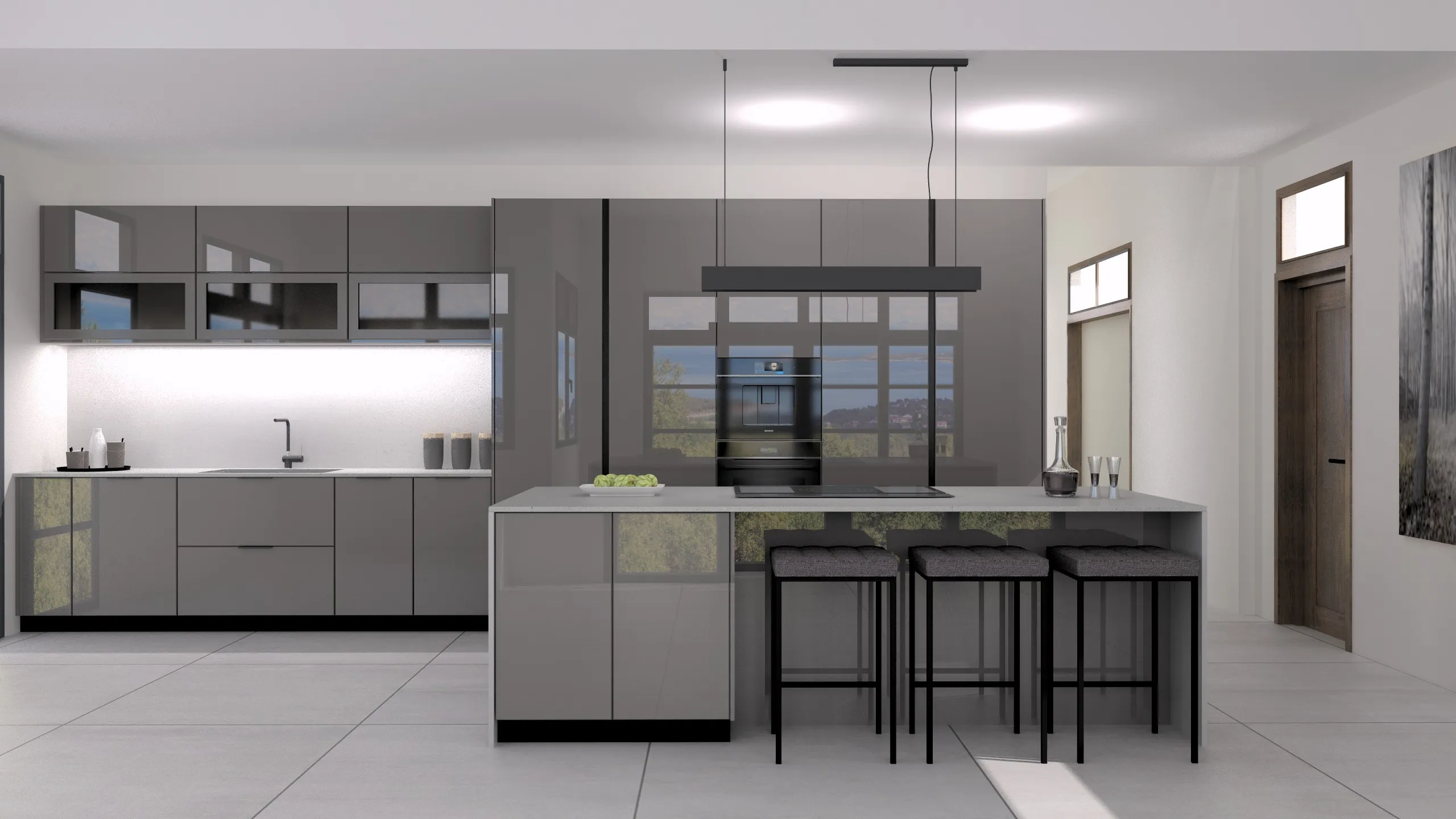 The Modern Styled cabinetry is a sleek, minimalist and sophisticated. A streamlined and open kitchen design, combined with integrated appliances, discreet lighting and muted colours, creates a refined space perfect for your family, friends and entertaining.